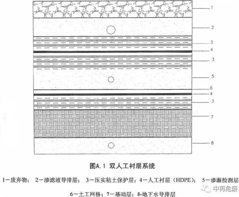 為防止危廢中的可溶成分溶解于水并在堆體重力作用下逐漸滲出,污染周邊環(huán)境,根據(jù)工程地質(zhì)和水文地質(zhì)的條件,安全填埋場會在底部進行襯層防護。區(qū)別于衛(wèi)生填埋場,安全填埋場采用雙層人工襯里防滲結(jié)構(gòu),使用的防滲材料規(guī)格要高于衛(wèi)生填埋場,經(jīng)過各種不同材料襯層的多層包裹,危廢與周邊土壤以及地下水充分隔離,而在運營過程中,每天的填埋作業(yè)完成后都會對填埋作業(yè)區(qū)進行土工膜覆蓋。不僅如此,防滲層中有滲濾液導(dǎo)流層,負(fù)責(zé)收集防滲層中的滲濾液,這些廢液將會被集中物化處理,避免了對地下水和土壤造成污染。