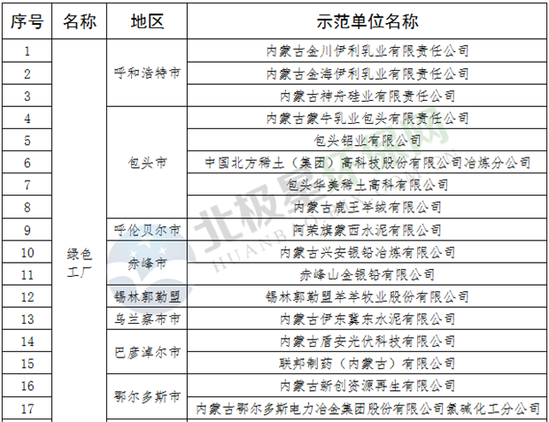 附件:內(nèi)蒙古自治區(qū)第二批綠色制造示范名單