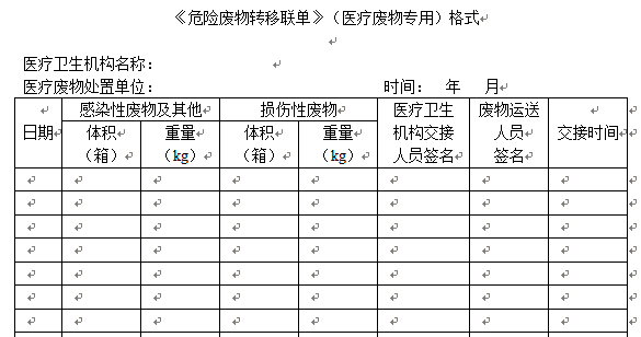 【匯總】醫(yī)療廢物管理各環(huán)節(jié)中的部分表格(僅供參考)