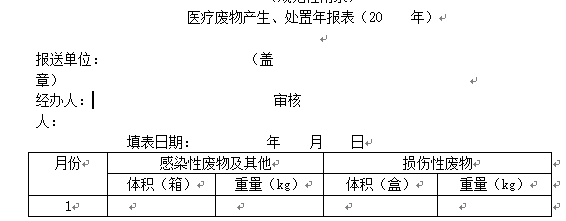 三、醫(yī)療廢物處置月報及年報(單位和處置中心都要填寫)