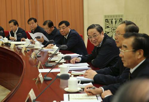 2014年10月30日,全國政協(xié)在北京召開雙周協(xié)商座談會,就“利用水泥窯協(xié)同處置垃圾廢棄物”問題建言獻(xiàn)策。全國政協(xié)主席俞正聲主持會議并講話。新華社記者 劉衛(wèi)兵 攝