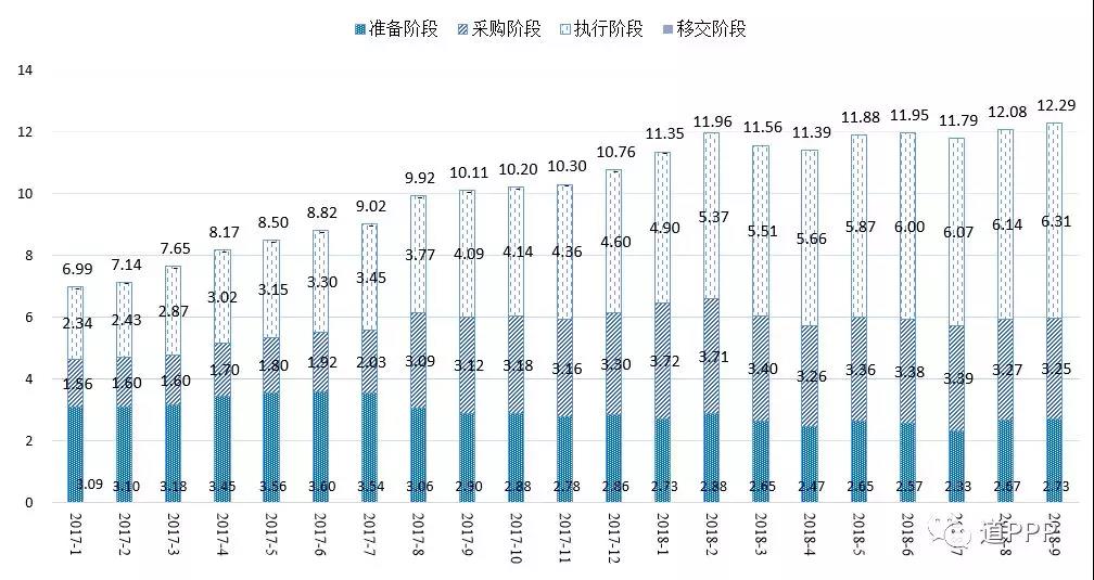 按照《關于規(guī)范政府和社會資本合作綜合信息平臺運行的通知》(財金〔2015〕166號)要求,建立了全國政府和社會資本合作(PPP)綜合信息平臺及項目管理庫。PPP項目按全生命周期分為識別、準備、采購、執(zhí)行和移交5個階段,其中,準備、采購、執(zhí)行和移交4個階段的項目納入管理庫。截至2018年三季度,綜合信息平臺項目管理庫情況如下: