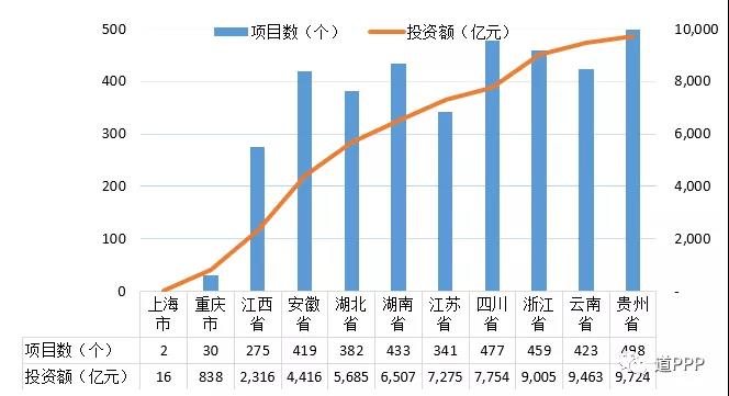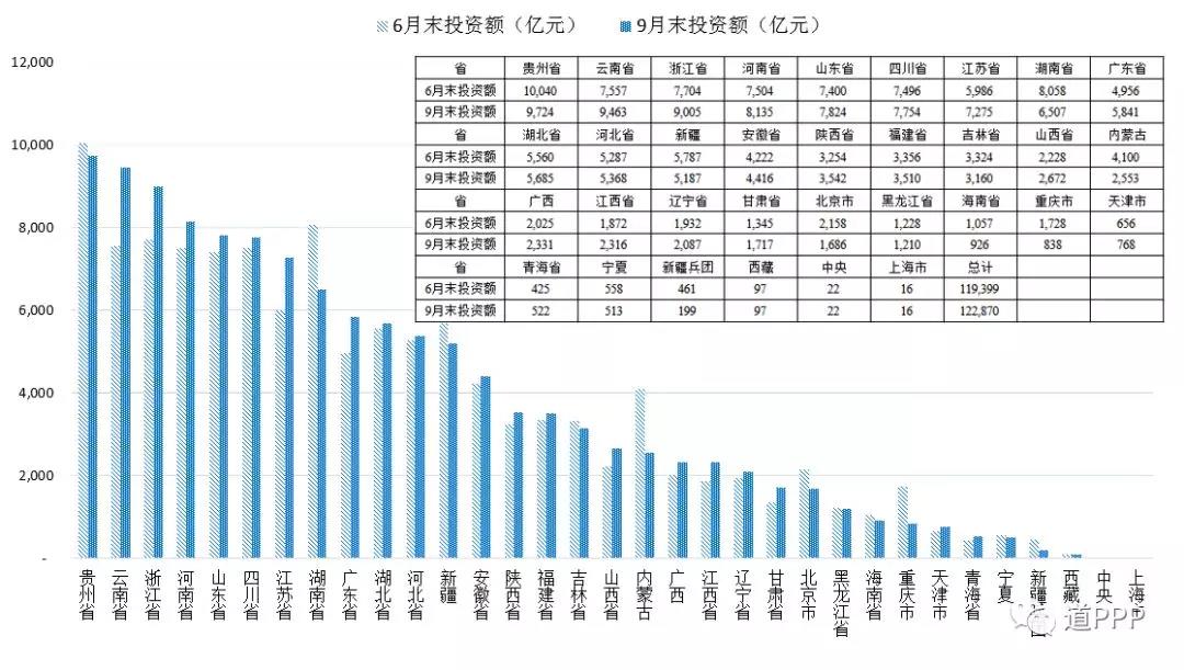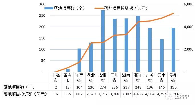 管理庫項目執(zhí)行情況:三季度(7-9月)管理庫環(huán)比二季度新增項目540個、投資額3,471億元;1-9月,管理庫新增項目1,152個、投資額1.5萬億元;截至2018年三季度,管理庫累計項目數(shù)8,289個、投資額12.3萬億元。落地項目,三季度管理庫環(huán)比新增落地項目421個、投資額3,135億元;1-9月,新增落地項目1,360個、投資額1.7萬億元,落地率上升11.1個百分點;管理庫累計落地項目數(shù)4,089個、投資額6.3萬億元,落地率49.3%。三季度環(huán)比新增已開工項目174個、投資額1,015億元;管理庫累計已開工項目總數(shù)1,860個、投資額2.6萬億元,開工率45.5%。地區(qū)方面,三季度環(huán)比新增項目數(shù)前三位是云南、廣東、江蘇,分別為113個、107個、63個;三季度環(huán)比新增投資額前三位是云南、浙江、江蘇,分別為1,906億元、1,301億元和1,288億元;管理庫累計項目總數(shù)前三位是山東(含青島)、河南、貴州,分別為729個、642個、498個;累計投資額前三位是貴州、云南、浙江,分別為9,724億元、9,463億元、9,005億元。行業(yè)方面,三季度環(huán)比新增項目數(shù)前三位的是市政工程、生態(tài)建設和環(huán)境保護、交通運輸,分別是172個、132個、56個;三季度項目環(huán)比新增投資額前三位是城鎮(zhèn)綜合開發(fā)、生態(tài)建設和環(huán)境保護、水利建設,分別為1,615億元、372億元、305億元。管理庫累計項目總數(shù)前三位是市政工程、交通運輸、生態(tài)建設和環(huán)境保護,合計占管理庫項目總數(shù)的62.3%;累計投資額前三位是市政工程、交通運輸、城鎮(zhèn)綜合開發(fā),合計占管理庫總投資額的72.2%。民企參與方面,4,089個落地項目中社會資本所有制信息完善的項目共4,018個,涉及社會資本共6,753家,其中民企占35.3%;民資背景項目1,711個、投資額2.1萬億元,分別占4,018個社會資本所有制信息完善的落地項目的44.8%和34.0%。消費領域基本公共服務項目(文化、旅游、體育、健康、養(yǎng)老、教育等6個領域)管理庫累計項目數(shù)1,409個、投資額1.3萬億元。污染防治與綠色低碳項目三季度環(huán)比新增項目326個、投資額1,014億元。管理庫累計污染防治與綠色低碳項目總數(shù)4,519個、投資額4.4萬億元。長江經(jīng)濟帶(上海、江蘇、浙江、安徽、江西、湖北、湖南、重慶、四川、云南、貴州)項目累計項目總數(shù)3,739個、投資額6.3萬億元,分別占管理庫的45.1%和51.3%;累計長江經(jīng)濟帶落地項目總數(shù)1,780個、投資額3.2