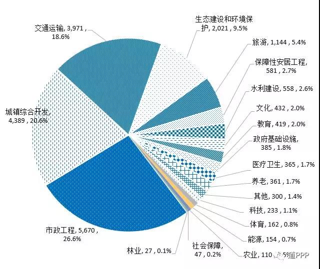管理庫共包括能源、交通運輸、水利建設、生態(tài)建設和環(huán)境保護、市政工程、城鎮(zhèn)綜合開發(fā)、農(nóng)業(yè)、林業(yè)、科技、保障性安居工程、旅游、醫(yī)療衛(wèi)生、養(yǎng)老、教育、文化、體育、社會保障、政府基礎設施和其他19個一級行業(yè)。示范項目及落地示范項目涵蓋全部19個行業(yè)。