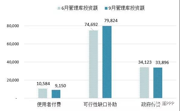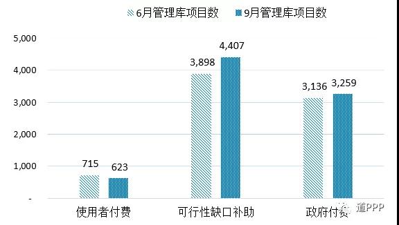 億元,分別占管理庫的43.5%和50.5%。京津冀累計項目總數(shù)423個、投資額7,822億元,分別占管理庫的5.1%和6.4%;累計落地項目總數(shù)216個、投資額4,763億元,分別占管理庫落地項目的5.3%和7.5%?;貓髾C制方面,三季度使用者付費類項目凈減項目92個、投資額1,435億元;可行性缺口補助類項目新增項目509個、投資額5,132億元;政府付費類項目新增123個,投資額凈減227億元。管理庫累計使用者付費類項目623個、投資額9,150億元;累計可行性缺口補助(即政府市場混合付費)類項目4,407個、投資額8.0萬億元;累計政府付費類項目3,259個、投資額3.4萬億元。