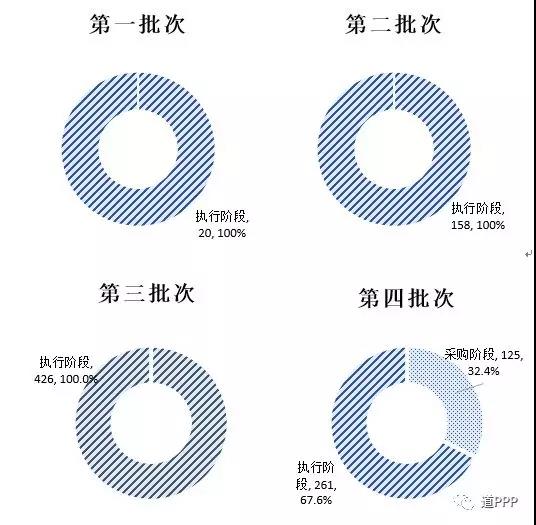 第一批20個示范項目自2016年底以來、第二批158個示范項目自2017年3月以來、第三批426個示范項目自2018年3月以來均已100%落地。第四批示范項目中落地項目261個,落地率67.6%。四批示范項目各自落地率如圖2-2-2。