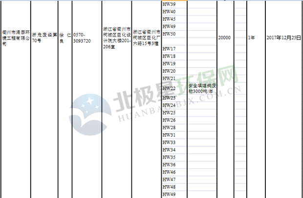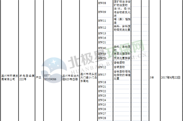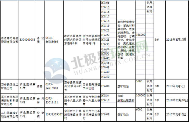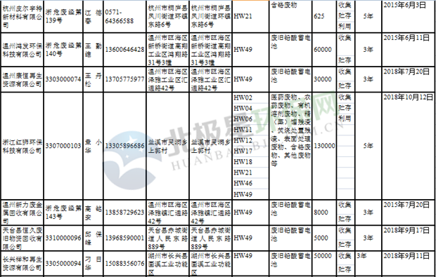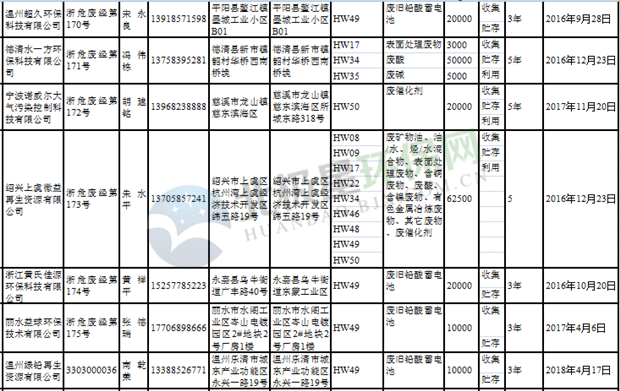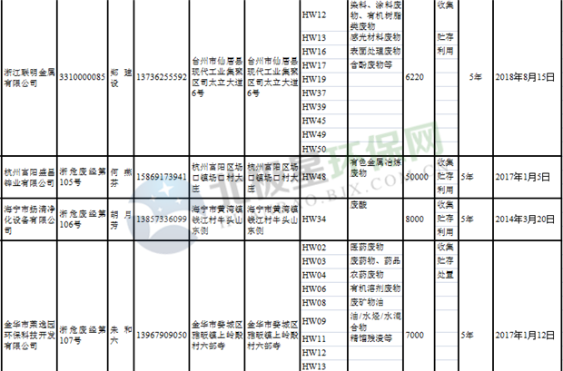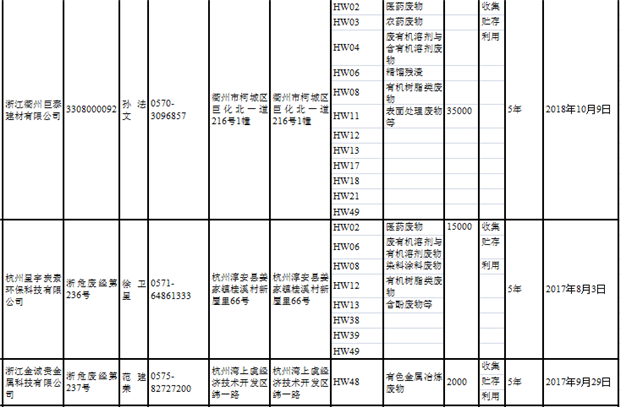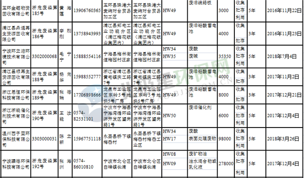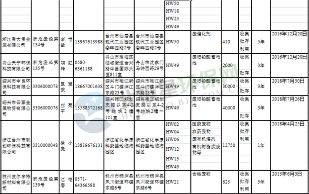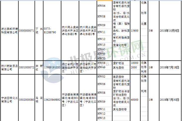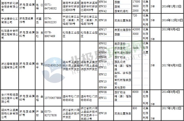 日前浙江省生態(tài)環(huán)境廳發(fā)布了《浙江省危險(xiǎn)廢物經(jīng)營單位名單(2018年10月26日更新)》,涉及企業(yè)255家,并附有聯(lián)系電話。具體內(nèi)容如下:
