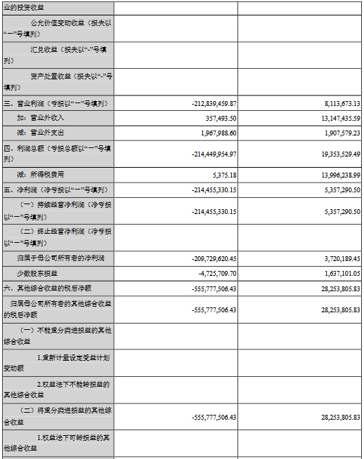 公告顯示,公司前三季度營業(yè)收入584,091,258.33元,同比減少52.62%,歸屬上市公司股東的凈利潤-209,729,620.45元,同比減少5737.61%。