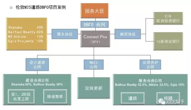 M25初建于80年代,設(shè)計運量為每天8.8萬輛車,僅有雙向六車道,而90年代便突破了每日20萬輛車的車流量,相當(dāng)于英國全國高速道路車流總量的15%,擁堵嚴(yán)重。從90年代起,高速公路局(Highways Agency)便陸陸續(xù)續(xù)進行了多個拓寬計劃,特別是2005年倫敦獲得2012年奧運會舉辦權(quán)后,啟動了英國最大的一個公路DBFO項目,合同價值62億英鎊,涉及2009到2012年3年建設(shè)期(60公里路段拓寬為單向四車道、1.25公里長的兩車道隧道翻修、45公里路段拓寬并轉(zhuǎn)化為智能公路、Dartford交叉口收費廣場的拆除),和總共30年的全路段運營。彼時我所在的咨詢公司作為聯(lián)合體成員參與該項目的競標(biāo),大概是我實際接觸PPP項目的開始。