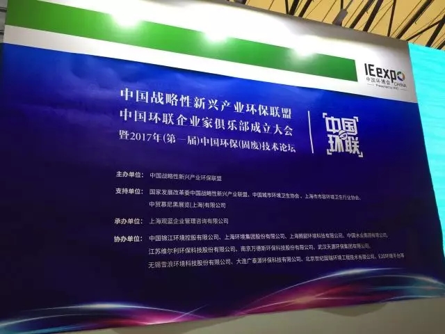 2017年5月4日,中國(guó)戰(zhàn)略性新興產(chǎn)業(yè)環(huán)保聯(lián)盟、中國(guó)環(huán)聯(lián)企業(yè)家俱樂部成立大會(huì)暨2017年(第一屆)中國(guó)環(huán)保(固廢)技術(shù)論壇在上海新國(guó)際博覽中心成功召開。在開幕式上,國(guó)家發(fā)展改革委中國(guó)戰(zhàn)略新興產(chǎn)業(yè)雜志執(zhí)行副社長(zhǎng)、中國(guó)戰(zhàn)略性新興產(chǎn)業(yè)聯(lián)盟秘書長(zhǎng)陳東升致辭并宣讀中國(guó)戰(zhàn)略性新興產(chǎn)業(yè)環(huán)保聯(lián)盟成立文件。中國(guó)城市環(huán)境衛(wèi)生協(xié)會(huì)理事長(zhǎng)肖家保,中國(guó)戰(zhàn)略性新興產(chǎn)業(yè)環(huán)保聯(lián)盟、中國(guó)環(huán)聯(lián)企業(yè)家俱樂部理事長(zhǎng)張益出席開幕式并致辭。開幕式現(xiàn)場(chǎng),中國(guó)環(huán)博會(huì)項(xiàng)目總監(jiān)胡勛洲宣布和中國(guó)環(huán)聯(lián)論壇戰(zhàn)略合作。開幕式最后,為聯(lián)盟學(xué)術(shù)委員會(huì)、戰(zhàn)略委員會(huì)主任委員以及副理事長(zhǎng)、常務(wù)理事、理事單位頒發(fā)證牌。