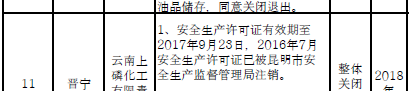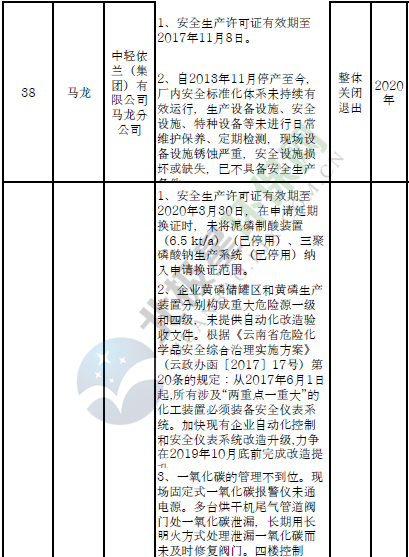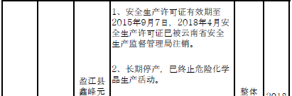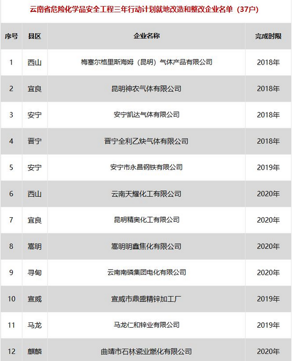日前云南省應(yīng)急管理廳發(fā)布了印發(fā)危險化學(xué)品安全工程三年行動計劃有關(guān)企業(yè)名單,明確關(guān)閉退出、就地改造、綜合整治的危險化學(xué)品生產(chǎn)(儲存)企業(yè)名單。