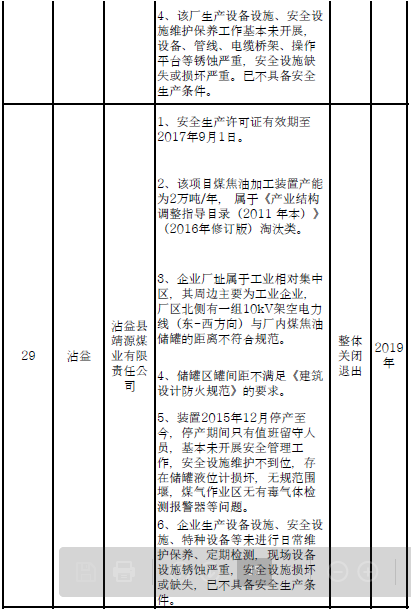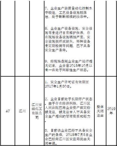 二、對91戶(詳見附件1)危險化學(xué)品生產(chǎn)(儲存)企業(yè)和部分生產(chǎn)裝置,雖不在城鎮(zhèn)人口密集區(qū),但由于不符合產(chǎn)業(yè)政策、不具備基本安全生產(chǎn)條件且無法整改的,實施關(guān)閉退出。其中: