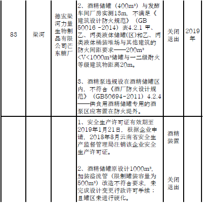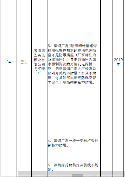 五、涉及重點監(jiān)管危險化工工藝的43戶企業(yè)、涉及重點監(jiān)管危險化學(xué)品的107戶企業(yè)以及213個重大危險源,各州市政府根據(jù)具體情況組織進(jìn)行整改。2019年10月底完成自動化控制和安全儀表系統(tǒng)改造升級工作。2019年10月底,未單獨設(shè)置控制室的乙醇生產(chǎn)企業(yè)按照規(guī)程要求完成改造,酒精生產(chǎn)車間的易燃易爆氣體檢測報警儀與通風(fēng)風(fēng)機(jī)實現(xiàn)聯(lián)鎖。