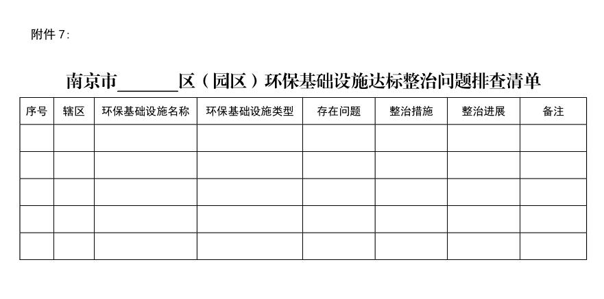 南京市環(huán)保基礎(chǔ)設(shè)施達(dá)標(biāo)整治問題排查清單