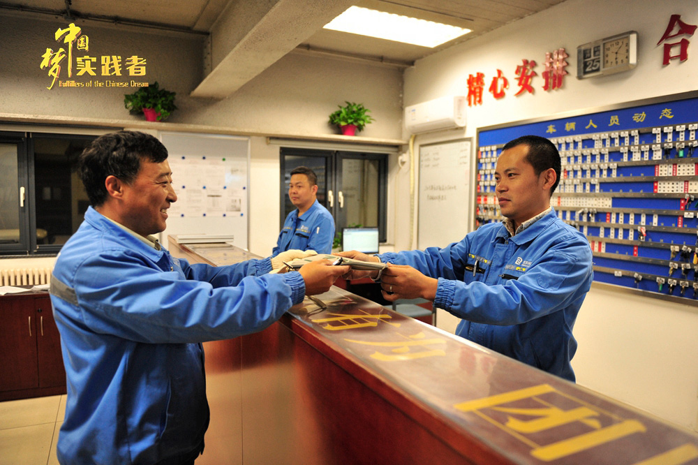 凌晨四點半,當整個京城還在熟睡時,王師傅宿舍的燈已經(jīng)亮了。刷牙、洗臉、出門,五點鐘王金標準時到達調(diào)度室,簽到、酒精測試、領取任務單、早班會、檢查車輛……接下來就是一整天緊張忙碌的工作。