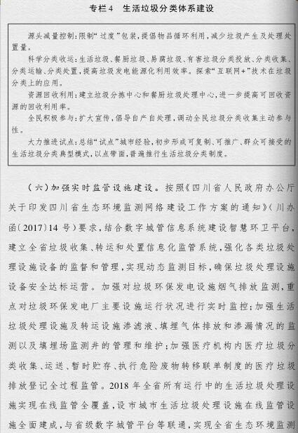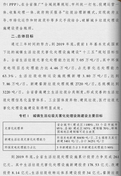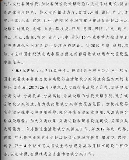 四川省政府印發(fā)了《四川省城鄉(xiāng)垃圾處理設施建設三年推進方案》(以下簡稱《方案》)?!斗桨浮诽岢?,到2019年底,我省生活垃圾無害化處理能力將達7.05萬噸/日,生活垃圾處理設施累計投資力爭完成361億元,普遍建立生活垃圾分類制度,形成完善的生活垃圾處理信息化監(jiān)管體系。