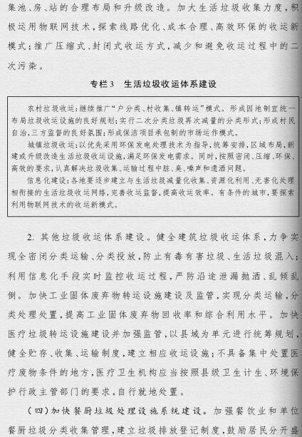 根據(jù)垃圾處理設施服務半徑和覆蓋范圍,規(guī)范和完善前端收集站點的布局和建設,加強縣城老舊轉運站改造和鎮(zhèn)鄉(xiāng)垃圾中轉設施建設,對餐飲業(yè)和單位餐廚垃圾分類收集管理,建立垃圾排放登記制度。