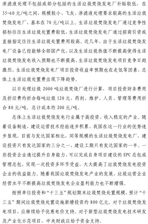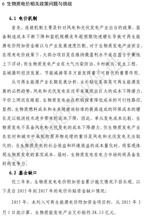 《報告》指出:部分垃圾焚燒發(fā)電企業(yè)惡性競爭導(dǎo)致垃圾處理費減少,使垃圾焚燒發(fā)電項目對垃圾電價依賴性增加。《報告》還提出:去補貼化是各類可再生能源發(fā)展的必然趨勢,截至2017年,未列入可再生能源電價附加資金目錄的補助資金和未發(fā)放補助資金共約143.64億元,其中農(nóng)林生物質(zhì)約64.1億元。