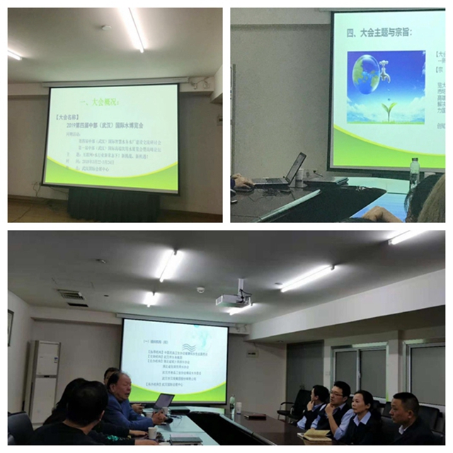 其次由水博會組委會項目運營總監(jiān)胡兵為參加會議的相關領導介紹展示2019中國(武漢)國際水博覽會項目實施方案的講解,詳見下圖