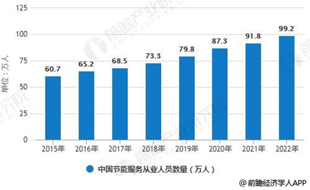 2015-2022年中國(guó)節(jié)能服務(wù)從業(yè)人員數(shù)量統(tǒng)計(jì)情況及預(yù)測(cè)