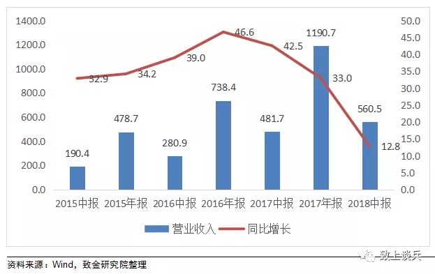致金研究院選取總計(jì)41家滬深兩市環(huán)保板塊上市公司,2018年上半年實(shí)現(xiàn)營業(yè)總收入560億元,同比增長12.8%,實(shí)現(xiàn)扣非歸母凈利潤66億元,同比增長6%。整體而言18年上半年環(huán)保板塊增速下降明顯,但仍保持增長態(tài)勢。