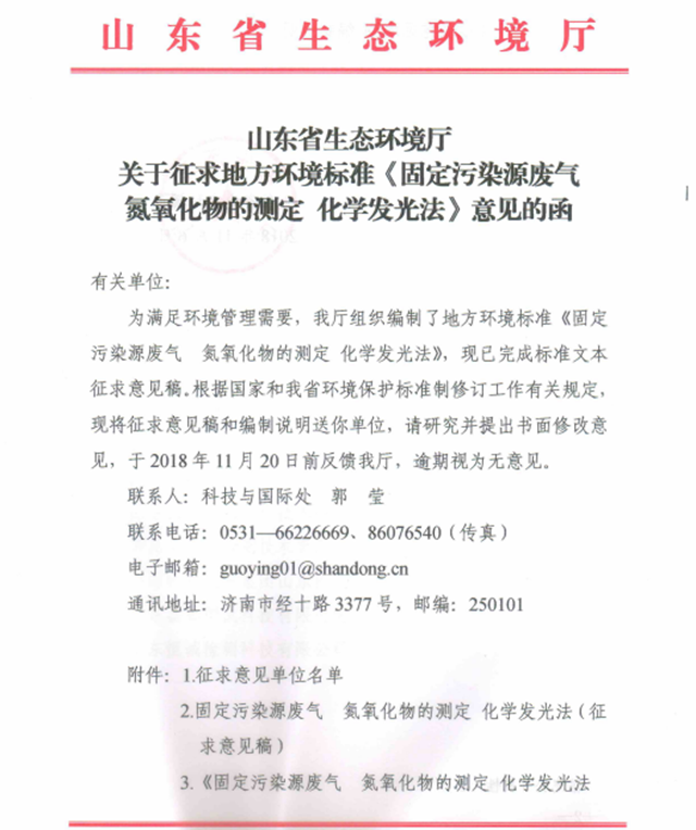 原標(biāo)題:關(guān)于征求地方環(huán)境標(biāo)準(zhǔn)《固定污染源廢氣氮氧化物的測(cè)定 化學(xué)發(fā)光法》意見的函
