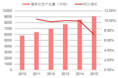 最新消費(fèi)數(shù)據(jù)顯示,2016 年,餐飲收入 35779 億元,同比增長(zhǎng) 10.8%,其中 12 月份餐飲收入 3353 億元,同比增長(zhǎng) 10.6%;。隨著餐飲行業(yè)的蓬勃發(fā)展,衍生品餐廚垃圾的產(chǎn)生量也在增加。