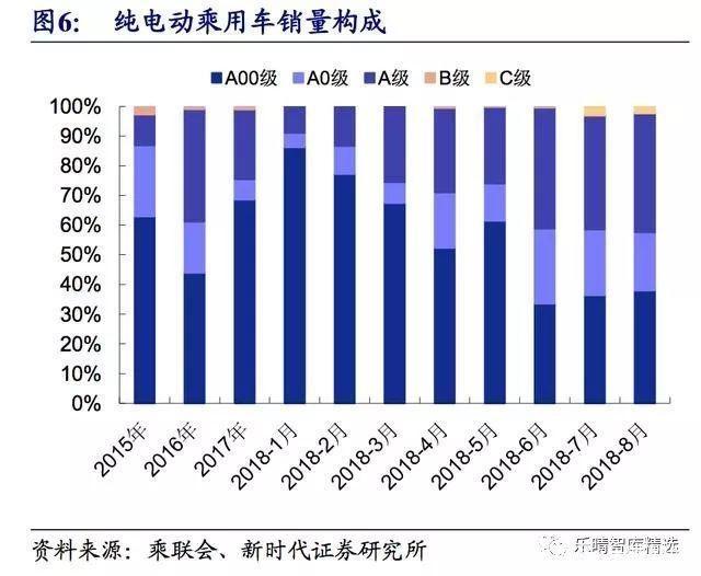 2018 年補(bǔ)貼新政出臺(tái),更加鼓勵(lì)長(zhǎng)續(xù)航里程乘用車,受過(guò)渡期后補(bǔ)貼大幅減少甚至取消的影響,短續(xù)航里程 A00級(jí)車型在 6 月 12 日前出現(xiàn)搶裝行情,過(guò)渡期結(jié)束后銷量占比逐步減少。