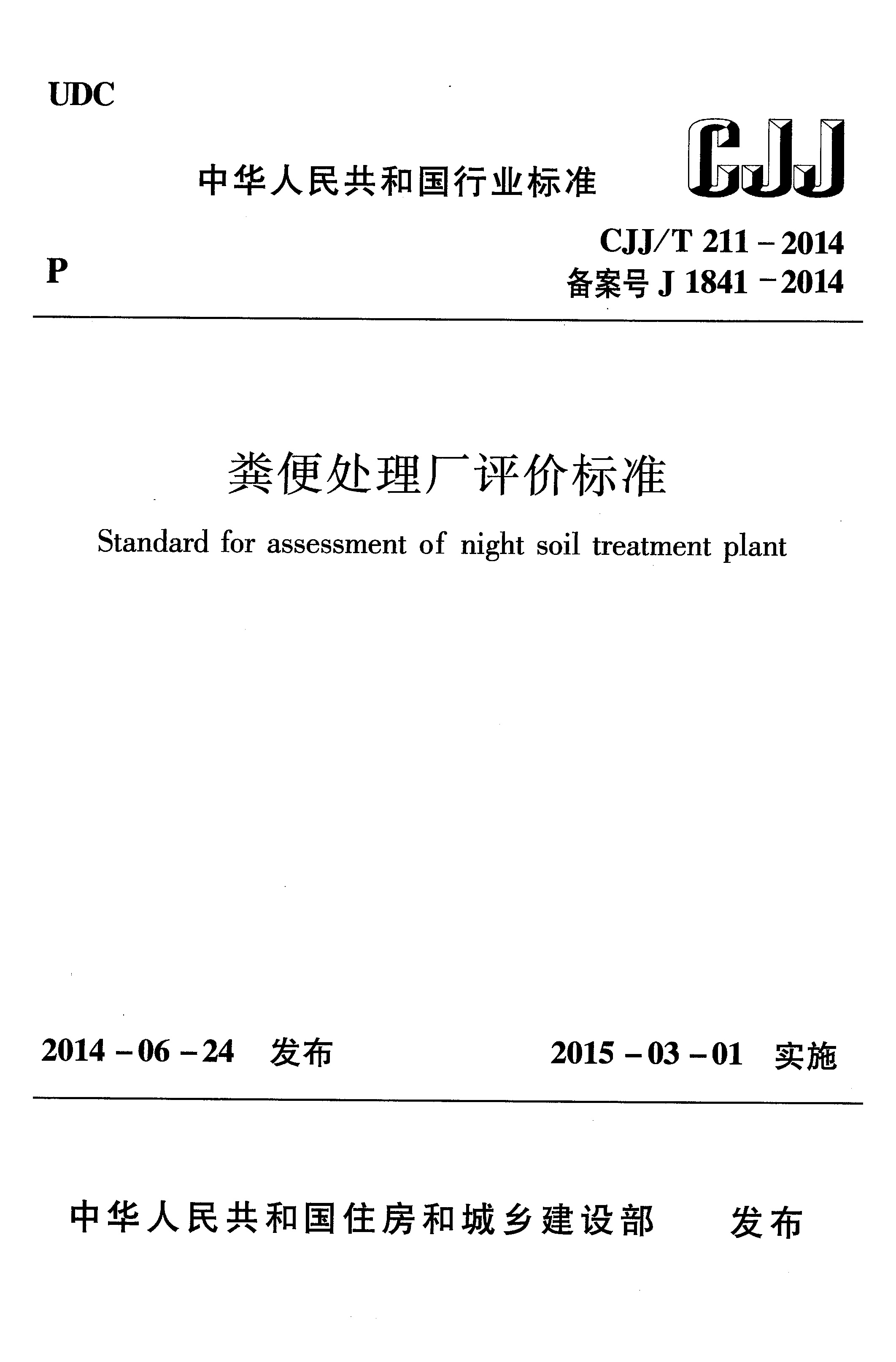 糞便處理廠評價標準(CJJ/T 211-2014)
