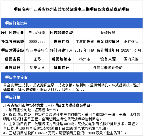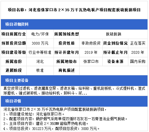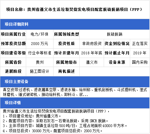 中項網(wǎng)獨家授權(quán)北極星環(huán)保網(wǎng)發(fā)布最新脫硫脫硝項目(2018年11月14日更新),涉及環(huán)保電廠配套脫硫脫硝項目、生物質(zhì)發(fā)電配套脫硫脫硝項目、熱電聯(lián)產(chǎn)脫硫脫硝項目、垃圾焚燒發(fā)電廠脫硫脫硝項目等,具體項目信息如下: