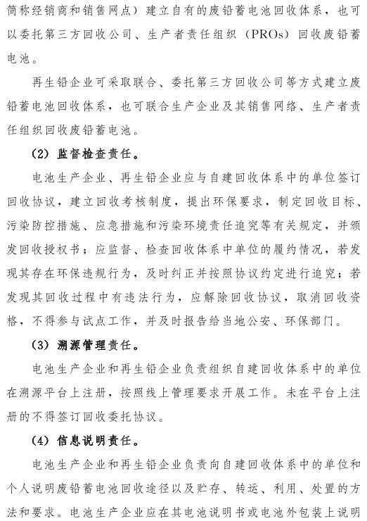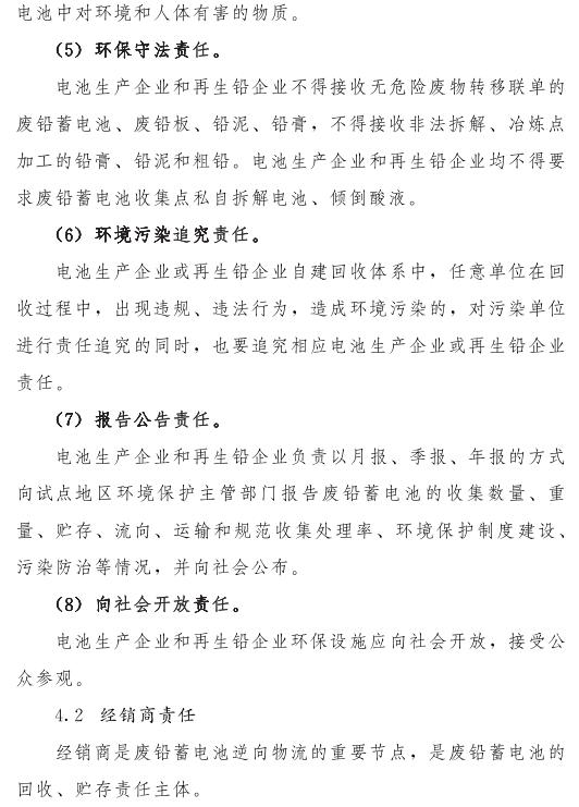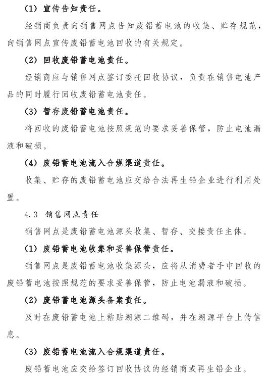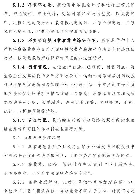 推動落實(shí)生產(chǎn)者責(zé)任延伸制度,由鉛蓄電池生產(chǎn)企業(yè)依托自有銷售渠道建立廢鉛蓄電池逆向物流回收體系,持危險廢物經(jīng)營許可證的再生鉛企業(yè)可通過自主回收、聯(lián)合回收或委托回收等方式建立回收體系。鼓勵生產(chǎn)企業(yè)和持證企業(yè)進(jìn)行信息溝通和密切合作,以市場為導(dǎo)向,建立穩(wěn)定的商業(yè)交易模式,并采取以舊換新等措施,不斷提高收集處理率。各回收體系收集的廢鉛蓄電池最終須交由具有危險廢物經(jīng)營許可證的再生鉛企業(yè)利用處置。制定 《廢鉛蓄電池規(guī)范化管理指南》,明確回收體系中各環(huán)節(jié)、各責(zé)任主體責(zé)任及廢鉛蓄電池管理規(guī)范。參與廢鉛蓄電池回收的各責(zé)任主體須嚴(yán)格遵守 《廢鉛蓄電池規(guī)范化管理指南》的各項(xiàng)規(guī)定。