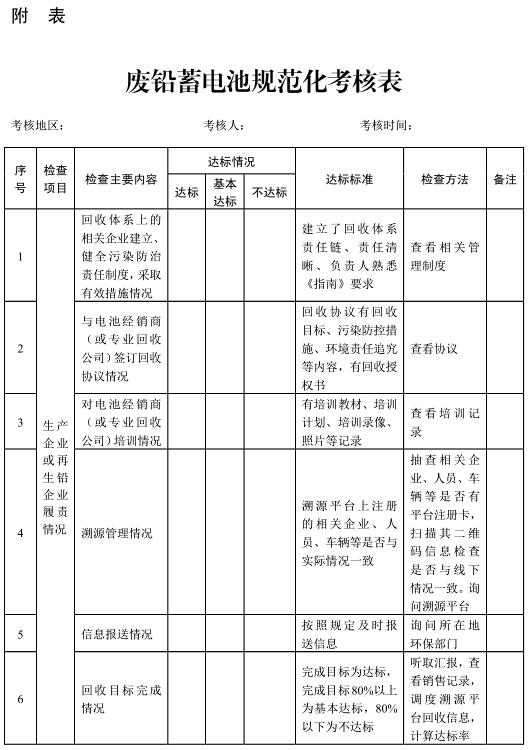 (三)加強(qiáng)督導(dǎo)考評。建立健全督導(dǎo)檢查、考核評價機(jī)制,加強(qiáng)對四個試點(diǎn)市廢鉛蓄電池回收處理體系建設(shè)情況的檢查考核,發(fā)現(xiàn)問題及時督查督辦,不斷修訂、完善制度,推動建立規(guī)范、高效、暢通的回收利用體系。