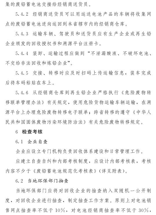 在試點(diǎn)市范圍內(nèi),廢鉛蓄電池在收集網(wǎng)點(diǎn)和經(jīng)銷商倉庫之間轉(zhuǎn)移,可使用鉛蓄電池貨物運(yùn)輸車輛轉(zhuǎn)運(yùn),廢鉛蓄電池自經(jīng)銷商轉(zhuǎn)運(yùn)至持危險廢物許可證的再生鉛企業(yè)、工業(yè)企業(yè)產(chǎn)生的廢鉛蓄電池集中轉(zhuǎn)運(yùn)的,按照危險廢物進(jìn)行管理,運(yùn)行危險廢物轉(zhuǎn)移聯(lián)單,遵守危險貨物運(yùn)輸管理有關(guān)規(guī)定??缡∞D(zhuǎn)移廢鉛蓄電池的,應(yīng)當(dāng)經(jīng)移出地和移入地省級環(huán)保部門批準(zhǔn)。