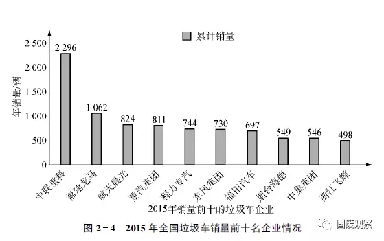 2015年全國垃圾車企業(yè)銷售情況