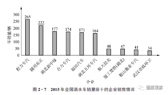 2015年全國灑水車企業(yè)銷售情況