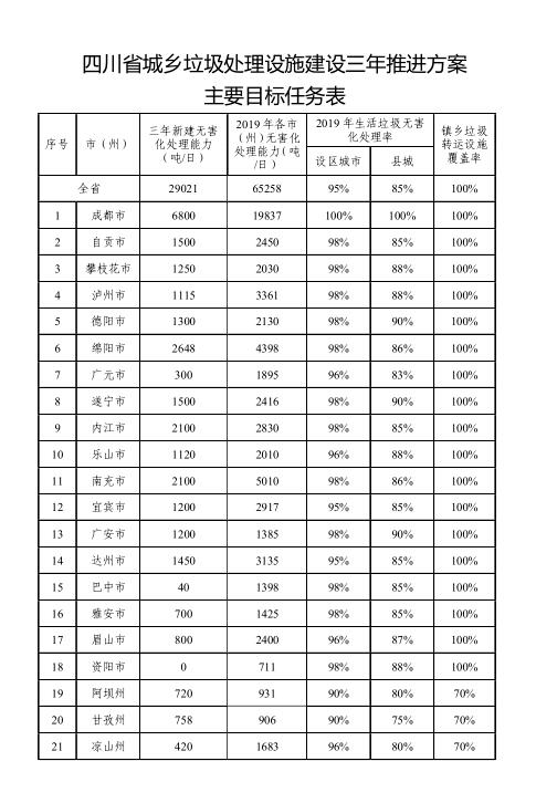 2.四川省城鄉(xiāng)垃圾處理設(shè)施建設(shè)三年推進(jìn)方案主要建設(shè)任務(wù)表、目標(biāo)任務(wù)表、重點(diǎn)流域重點(diǎn)區(qū)域目標(biāo)分解表及實(shí)施項(xiàng)目計(jì)劃表