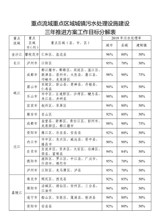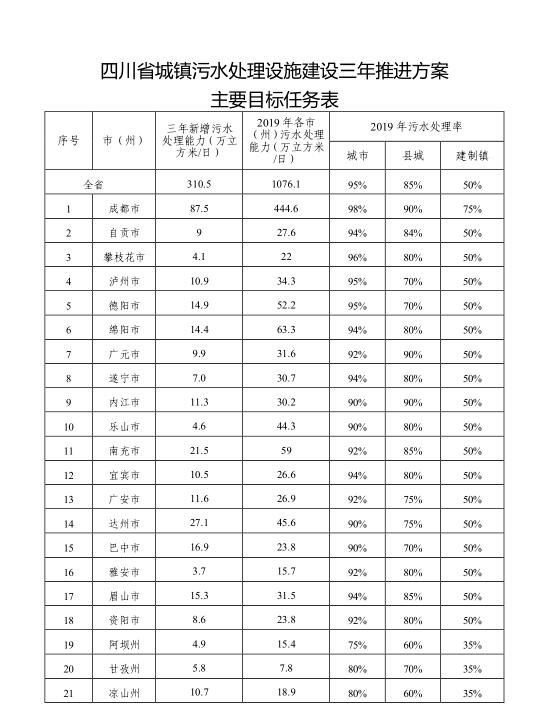 附件:1.四川省城鎮(zhèn)污水處理設(shè)施建設(shè)三年推進(jìn)方案主要建設(shè)任務(wù)表、目標(biāo)任務(wù)表、重點(diǎn)流域重點(diǎn)區(qū)域目標(biāo)分解表及實(shí)施項(xiàng)目計(jì)劃表