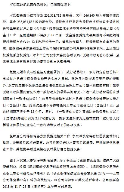 中金環(huán)境11月22日晚間公告,公司實際控制人沈金浩擬將1.28億股股份(占公司總股本的6.65%)轉(zhuǎn)讓給無錫市政,轉(zhuǎn)讓價格為4.42元/股,交易作價5.65億元。此外,沈金浩擬通過表決權(quán)委托方式將剩余股份中2.33億股股份對應的表決權(quán)委托給無錫市政,占公司總股本的12.13%。交易完成后公司控股股東將變更為無錫市政,實際控制人將變更為無錫市國資委。公司股票將于11月23日復牌。
