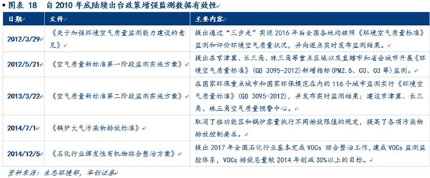 對(duì)監(jiān)測(cè)數(shù)據(jù)要求提升從政策看來(lái)主要表現(xiàn)在兩個(gè)方面:(1)擴(kuò)大監(jiān)測(cè)指標(biāo)范圍+縮緊合格要求。早在2012 年環(huán)保部頒布新版《環(huán)境空氣質(zhì)量標(biāo)準(zhǔn)》中普遍實(shí)施的指標(biāo)中新增PM2.5,部分區(qū)域?qū)嵤┑闹笜?biāo)中新增了氮氧化物,并新增推薦項(xiàng)目鎘、汞、砷、六價(jià)鉻,擴(kuò)大了環(huán)境監(jiān)測(cè)數(shù)據(jù)的覆蓋范圍;同時(shí)對(duì)NO2、PM10、鉛、苯并芘等已有監(jiān)測(cè)指標(biāo)的合格要求也變得更加嚴(yán)格。而該標(biāo)準(zhǔn)的實(shí)施細(xì)則在2013年3月頒布并廣泛實(shí)行。2014年又進(jìn)一步出臺(tái)對(duì)大氣和石化行業(yè)的細(xì)分要求,提高對(duì)排放限值的規(guī)定。(2)管理+采集雙管齊下提升數(shù)據(jù)真實(shí)性。自2012年出臺(tái)的《關(guān)于加強(qiáng)環(huán)境空氣質(zhì)量監(jiān)測(cè)能力建設(shè)的意見(jiàn)》開(kāi)始提出要通過(guò)健全審核機(jī)制、提高公布數(shù)據(jù)的頻率等管理手段來(lái)加強(qiáng)環(huán)境監(jiān)測(cè)數(shù)據(jù)的有效性,提出共享數(shù)據(jù)的概念,并制定“三步走”的執(zhí)行方案,系列政策一直持續(xù)到2013年底。