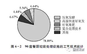 對已知處理工藝的90座處理設(shè)施的統(tǒng)計分析表明,以厭氧發(fā)酵為主的處理設(shè)施占78.89%,采用高溫快速好氧發(fā)酵的設(shè)施占6.67%,采用好氧堆肥的設(shè)施占4.44%,固液分離后液體厭氧、固體堆肥或制飼料(復(fù)合處理)的設(shè)施占5.56%,采用其他處理技術(shù)的占4.44%。厭氧發(fā)酵仍然是主流技術(shù)。