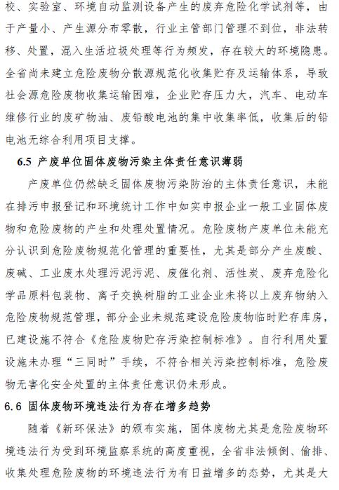 然而,當(dāng)前我省正處于工業(yè)化和城鎮(zhèn)化快速發(fā)展的階段,產(chǎn)業(yè)結(jié)構(gòu)偏重,固體廢物產(chǎn)生量時(shí)空分布不均,固廢處理處置設(shè)施與產(chǎn)生量不匹配的問(wèn)題突出,尤其是工業(yè)固體廢物產(chǎn)生量持續(xù)增加,危險(xiǎn)廢物、污水處理廠污泥等固體廢物的處理處置問(wèn)題未得到根本解決,加上全省固體廢物管理能力十分薄弱,固體廢物污染防治形勢(shì)嚴(yán)峻。2016 年,國(guó)務(wù)院印發(fā)《土壤污染防治行動(dòng)計(jì)劃》,對(duì)固體廢物污染防治均提出了明確要求,科學(xué)制定《固體廢物污染防治規(guī)劃期規(guī)劃》為今后一個(gè)時(shí)期開(kāi)展全省固體廢物減量化、資源化、無(wú)害化提拱了重要依據(jù),對(duì)于確?!耙唤逅驏|流”,實(shí)現(xiàn)經(jīng)濟(jì)綠色發(fā)展具有重大現(xiàn)實(shí)意義。