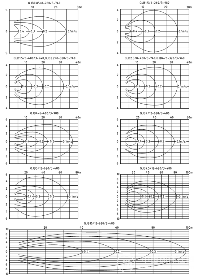 潛水?dāng)嚢铏C的選型是一項比較復(fù)雜的工作,選型的正確與否直接影響設(shè)備的正常使用,作為選型的原則就是要讓攪拌機在適合的容積里發(fā)揮充分的攪拌功能,一般可用流速來確定。根據(jù)污水處理廠不同的工藝要求,攪拌機最佳流速應(yīng)保證在0.15~0.3m/s之間,如果低于0.15m/s的流速則達(dá)不到推流攪拌效果,超過0.3m/s的流速則會影響工藝效果且造成浪費。所以在選型前首先確定潛水?dāng)嚢铏C運用的場所,如:污水池、污泥池、生化池;其次是介質(zhì)的參數(shù),如:懸浮物含量、粘度、溫度、PH值;還有水池的形狀、水深等。