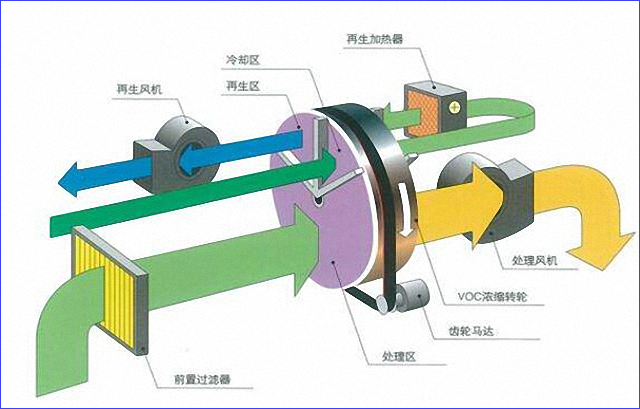 RTO核心組成沸石輪轉(zhuǎn)濃縮機(jī)(RC)示意圖