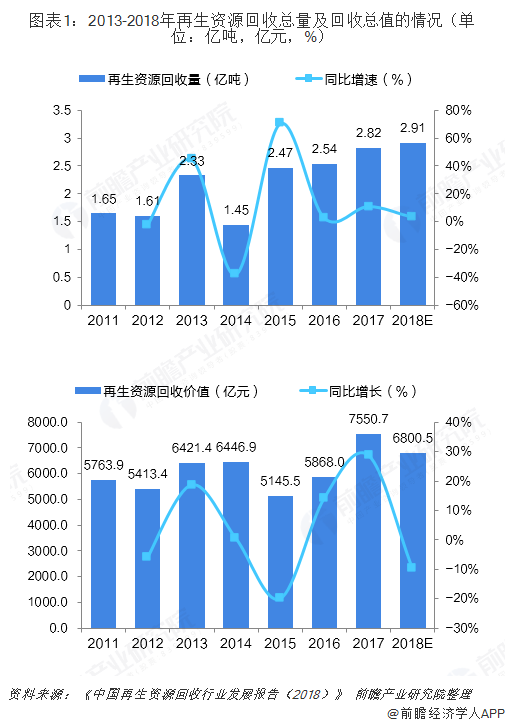 近年來,我國再生資源回收行業(yè)增長率在低位運行,市場呈現(xiàn)低迷態(tài)勢,不過,伴隨著再生資源領(lǐng)域政策的開始完善和盈利模式的持續(xù)創(chuàng)新,行業(yè)拐點漸顯。細(xì)分領(lǐng)域方面,電子電器產(chǎn)品受益于政策支持迎來報廢高峰期;廢汽車行業(yè)發(fā)展限制較多。 十三五時期,行業(yè)低迷態(tài)勢逐步改善 2013-2017年,再生資源回收量和回收總值...