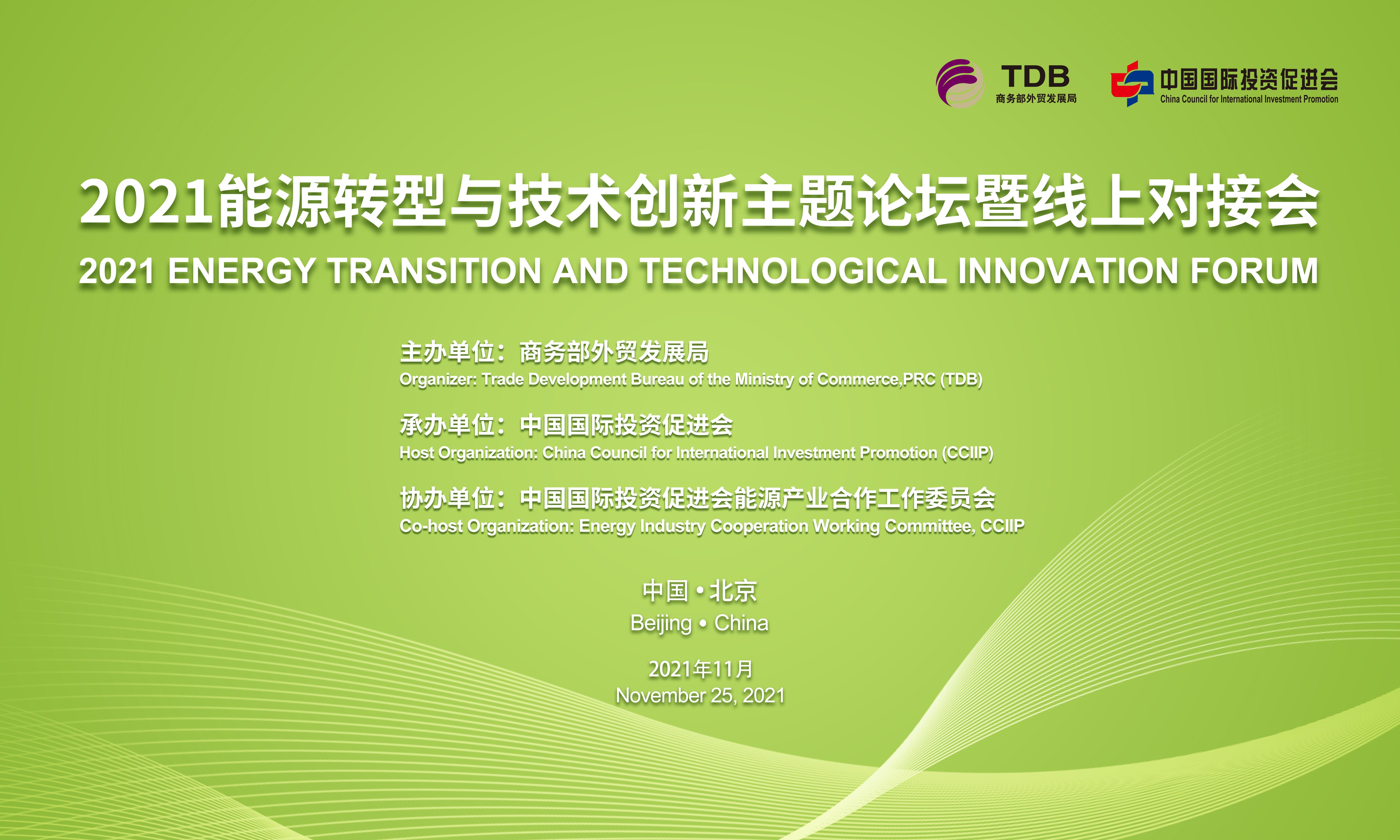 2021年11月25日下午,由商務(wù)部外貿(mào)發(fā)展局主辦、中國國際投資促進會承辦、中國國際投資促進會能源產(chǎn)業(yè)合作工作委員會協(xié)辦的“2021年能源轉(zhuǎn)型與技術(shù)創(chuàng)新主題論壇暨線上對接會”成功舉辦。本次論壇以“能源轉(zhuǎn)型與技術(shù)創(chuàng)新”為主題,聚焦“雙碳目標(biāo)&...