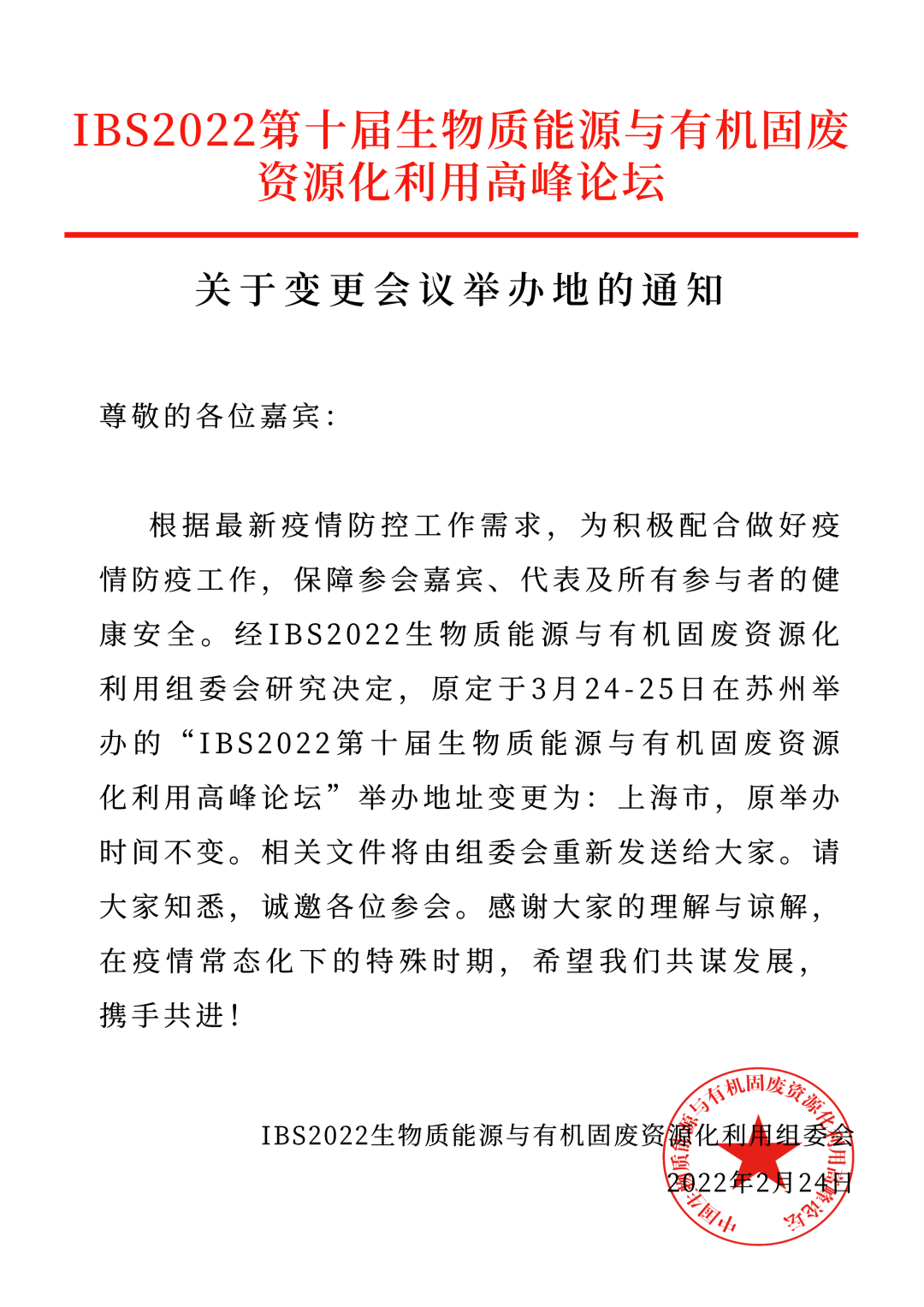 延期通知+地點變更 | IBS2022第十屆生物質(zhì)能源與有機固廢資源化利用高峰論壇延期舉辦
