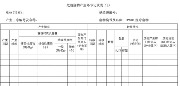 【匯總】醫(yī)療廢物管理各環(huán)節(jié)中的部分表格(僅供參考)