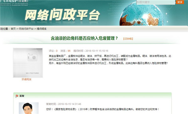 環(huán)保廳回復(fù):含油漆的邊角料是否應(yīng)納入危廢管理?