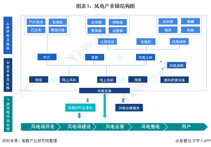 風電產(chǎn)業(yè)鏈分為上游材料及零部件、中游風機整機及運維、下游風電開發(fā)運營。上游風機部件中的葉片是產(chǎn)業(yè)鏈中供應(yīng)最緊張的環(huán)節(jié),風電葉片的關(guān)鍵材料巴沙木和PVC泡沫依賴進口。目前,風電產(chǎn)業(yè)鏈代表企業(yè)主要集中在江蘇、北京、上海、山東等地區(qū),其中,江蘇風電產(chǎn)業(yè)發(fā)展領(lǐng)先。 風電產(chǎn)業(yè)鏈全景梳理:核心原材料供應(yīng)緊張 風...