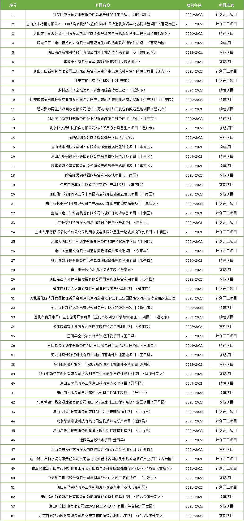 唐山市2021年重點建設(shè)項目計劃公布,全市共安排市重點項目460項,總投資8057.5億元,當年計劃投資1800.1億元。 其中,環(huán)保相關(guān)項目整理如下: 續(xù)建項目有16個: 1、唐山文豐資源綜合利用有限公司工業(yè)固廢處理及再生資源綜合利用工程項目(曹妃甸區(qū)) 2、潤電環(huán)保(唐山曹妃甸)有限公司曹妃甸生...